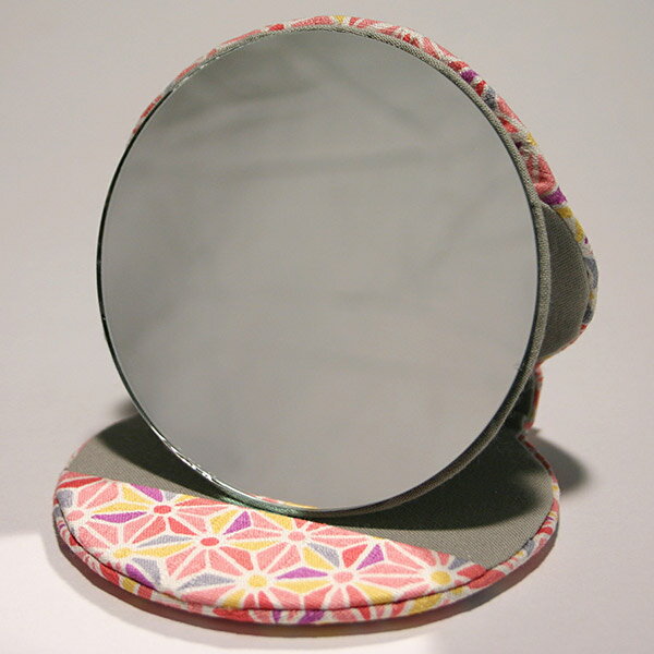 丸手鏡の表面にはうす綿が入っていて、ふんわり優しい手ざわりになっています。
